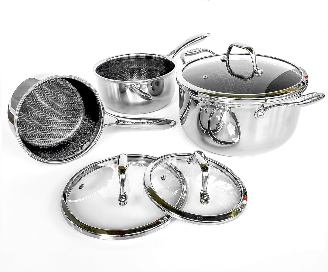 Unlike other companies who have a hybrid surface just on the bottom, Our advanced manufacturing capability enables us to bring our hybrid surface up to the rim, even in our deepest stock pots, giving you consistent performance.
